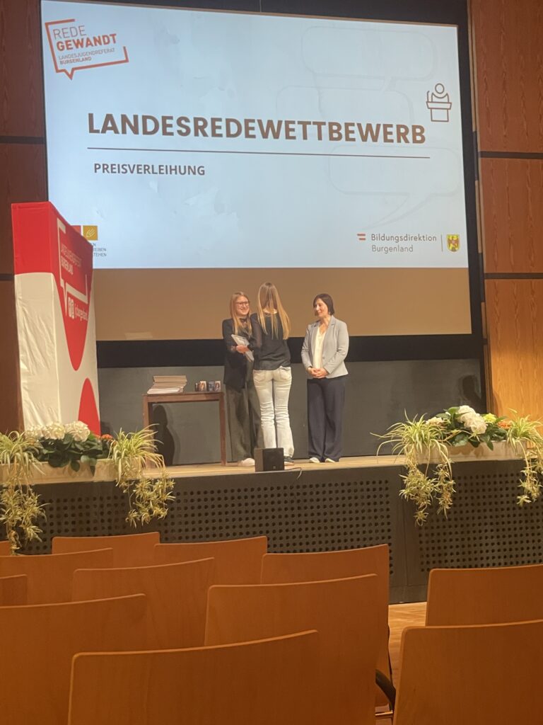 Großer Erfolg für unsere Schule beim diesjährigen burgenländischen Redewettbewerb: Gleich zwei Schülerinnen konnten mit ihren beeindruckenden Leistungen die Jury überzeugen und hervorragende Platzierungen erreichen.